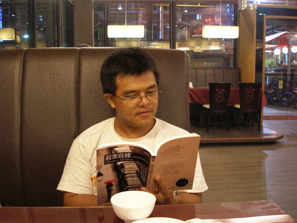 等上菜時喬登看了鄧惠文著「寂寞收據」,豬莉在練習自拍