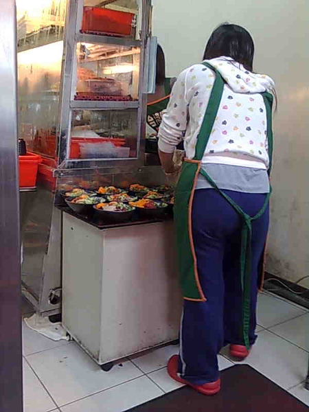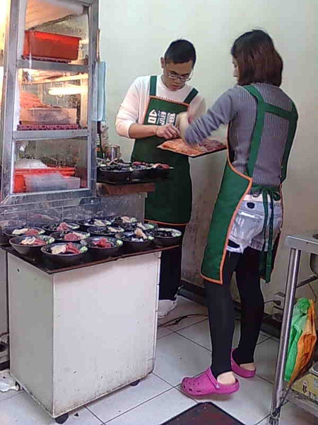 等著等著,剛好看到工作人員正在為海鮮蓋飯排盤, 順便照一下囉~~