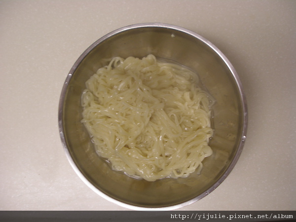 麵體下滾水煮後, 要不停的攪拌才會把麵糰給喇開