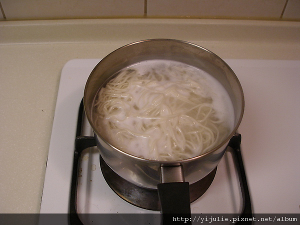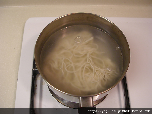 滾開後大約再1分半左右, 等所有的麵條都浮上來就可以上鍋了