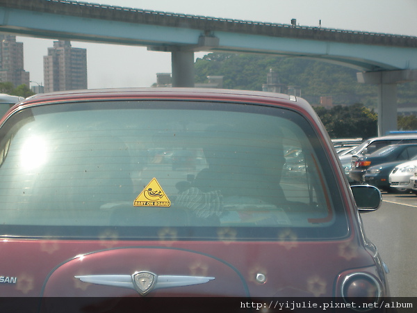 在排隊停車時看到一張正確的汽車座椅的英文, 很興奮的拍了下來, 這位爸爸媽媽, 真想替你鼓鼓掌