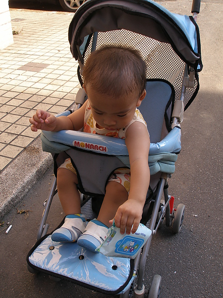 柚子體重逼近10kg, 再用揹巾帶著他去銀行辦事、買菜或到大賣場的話, 我的腰可能會先去做復健了...XD