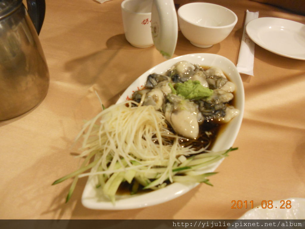 把鮮蚵和醬油及wasabi放一起, 再加點薑絲,